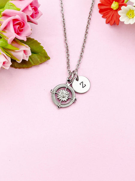 Compass Charm Silver Necklace, Tarnish Resistant Stainless Steel Compass Pendants, N6286