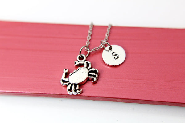Crab Necklace, Crab Charm, Ocean Beach Jewelry Gift, Personalized Initial Gift, N4393