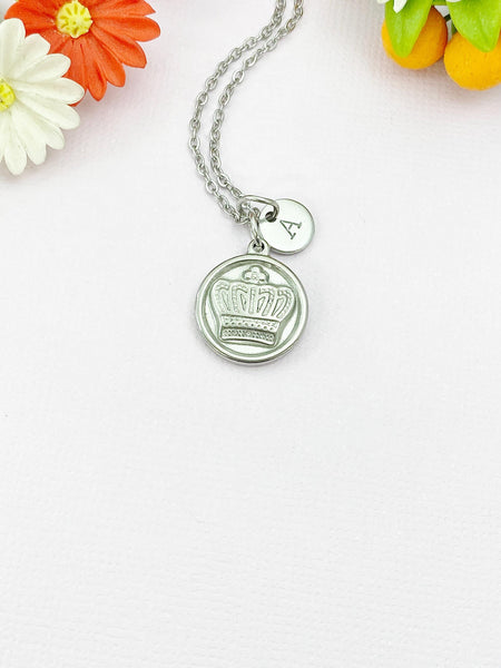This is a silver -tone Crown charm with hand stamped initial charm on brass/stainless steel 18 inches chain or bracelet or keyring.