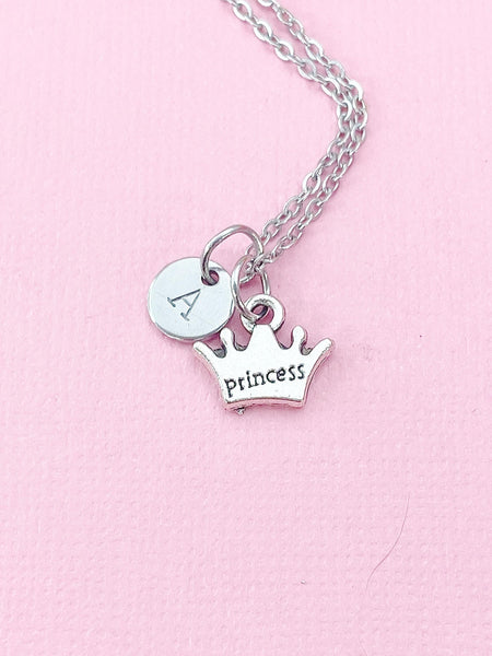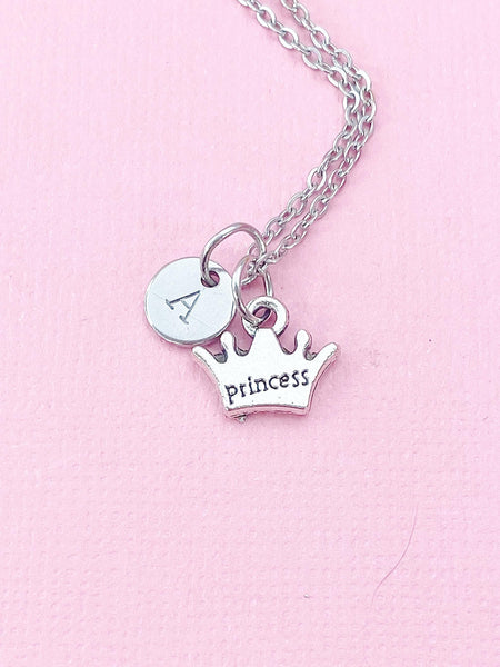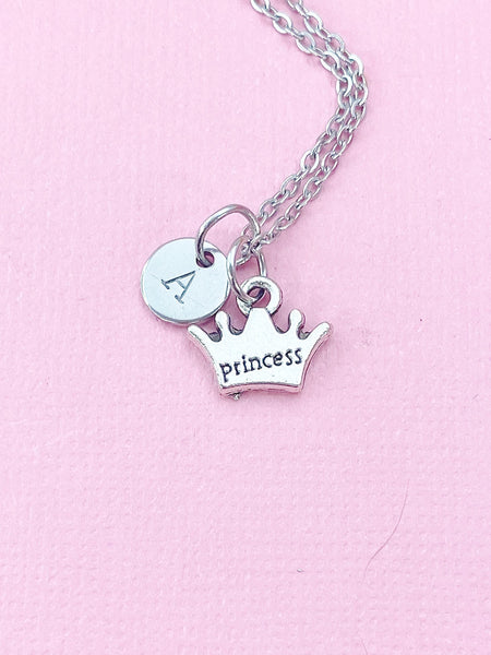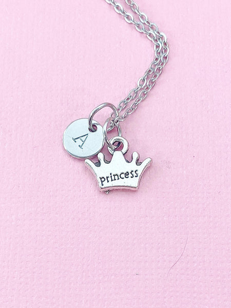 This is a silver -tone Crown Princess charm with hand stamped initial charm stainless steel 18 inches chain or bracelet or keyring.