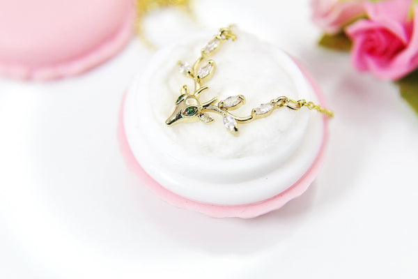 Cubic Zirconia Deer Buck Necklace, Best Christmas Gift for Mom Aunt Sister Daughter Niece Granddaughter Cousin Personalized Gift,