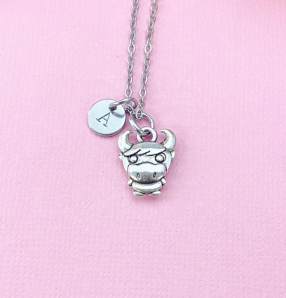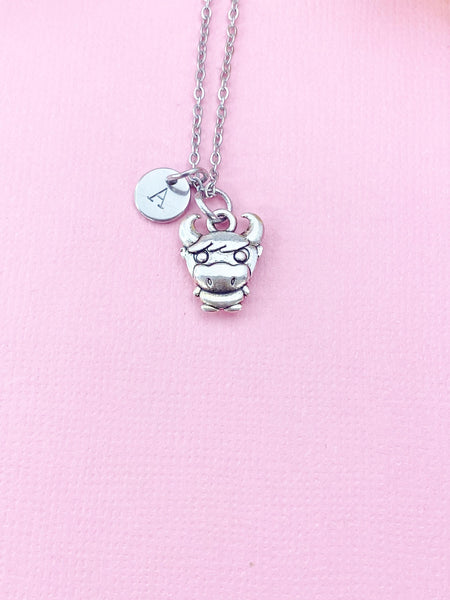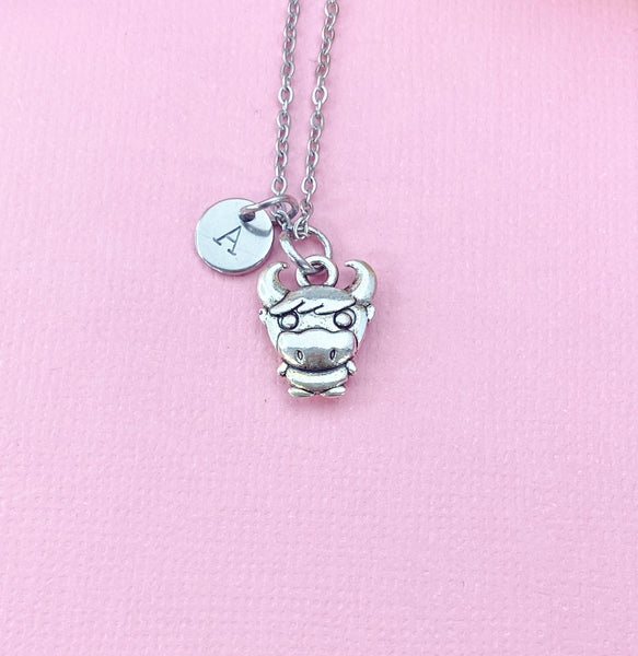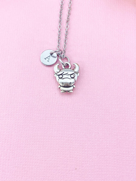 This is a silver -tone cow charm with hand stamped initial charm stainless steel 18 inches chain or bracelet or keyring.
