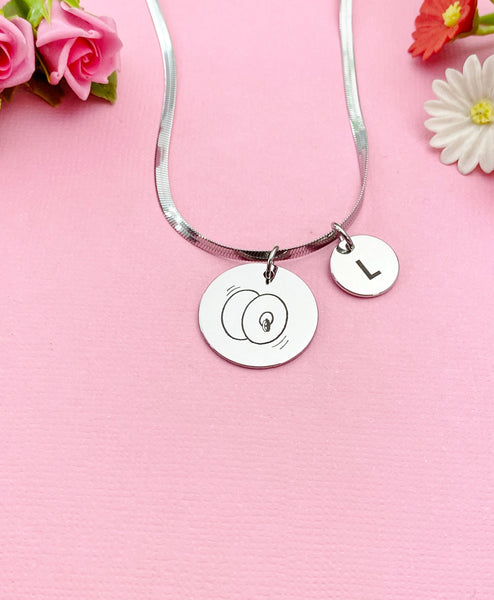 This is a unique engraving Cymbals and initial charm on stainless steel 18 inches necklace chain