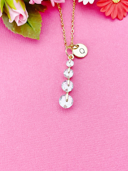 This is a gold tone drop charm with hand stamped initial charm on brass/stainless steel chain.