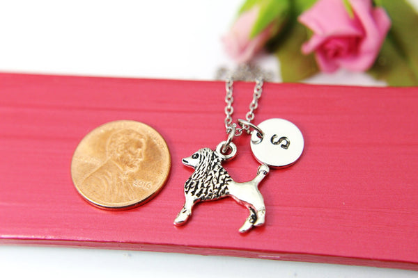 Dog Necklace, Poodle Dog Charm, Dog Lover Pet Jewelry Gift, Personalized Initial Gift, N4395