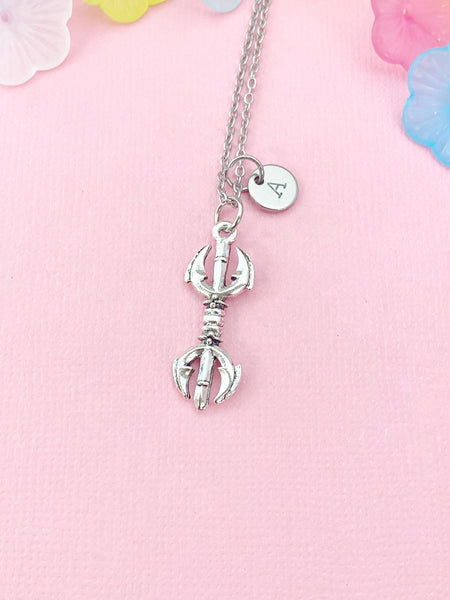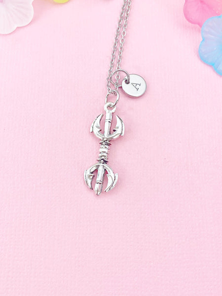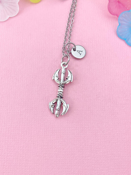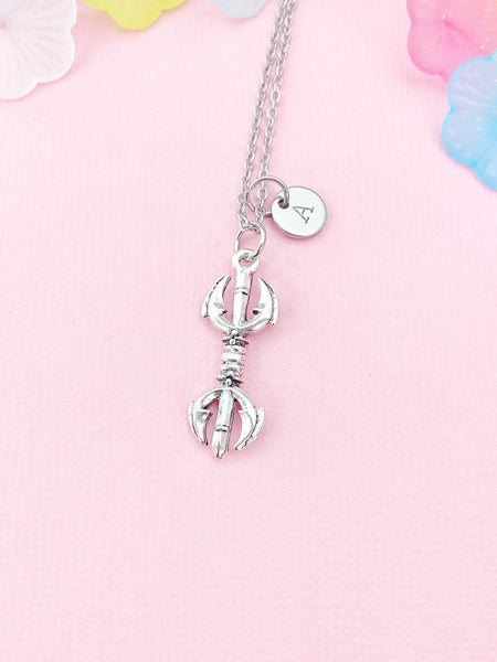 This is a silver -tone Dorje Vajra charm with hand stamped initial charm stainless steel 18 inches chain or bracelet or keyring.