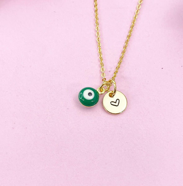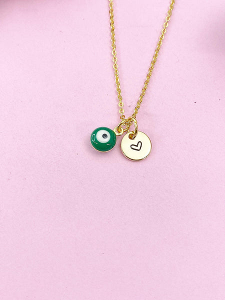 Evil Eye Gold Necklace, Green Evil Eye, N6263G
