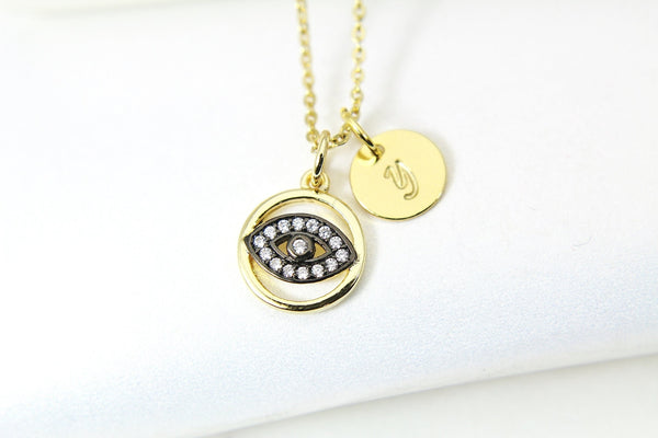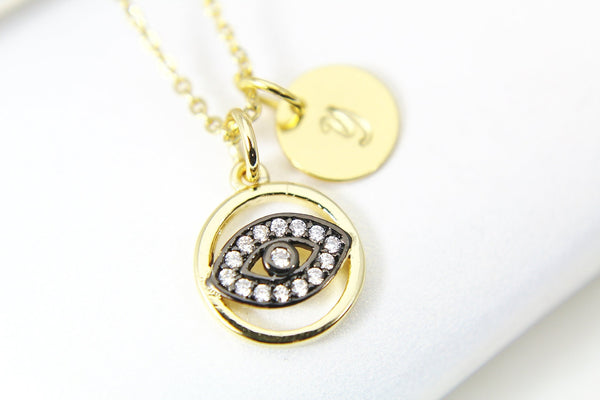 Evil Eye Necklace, Gold Evil Eye Charm, Black Evil Eye Charm, Mothers Day Gift, Dainty Necklace, Delicate, Minimal, Personalized Gift, G010