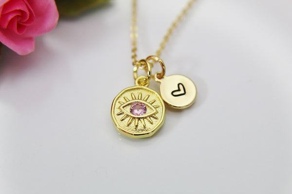Evil Eye Necklace, Gold Pink Evil Eye, October Birthday Gift, Graduation Gift, Christmas Gift, Thank You Gift, Appreciation Gift,