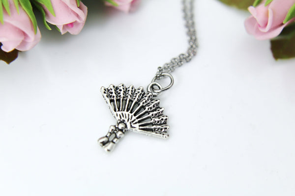 Fan Necklace, Silver Japanese Fan Charm Necklace, Fan Charm, Hand Fan Charm, Fan Jewelry, Halloween Gift, Christmas Gift, N452