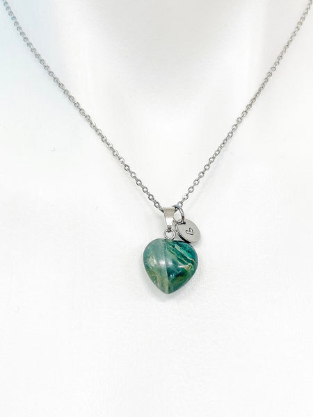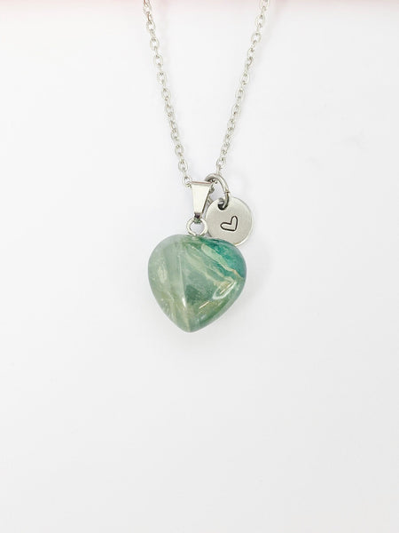 This is a Natural Fluorite Pendants with hand stamped initial charm on stainless steel 18 inches chain.