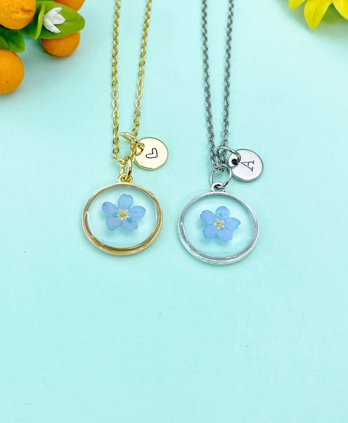 Forget Me Not Charm Necklace, Real Forget Me Not Dried Press Flower Jewelry Gift, N6600