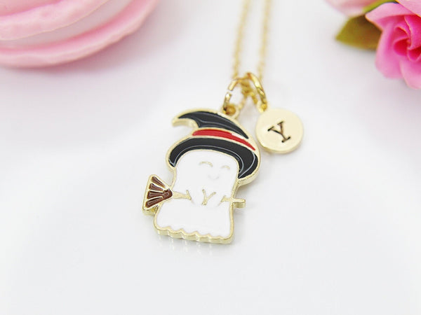 Ghost Necklace, Cute Halloween Witch, Fall Autumn Gift, Personalized, Christmas Gift, Birthday Gift, Appreciation Gift, Thank You Gift N3685