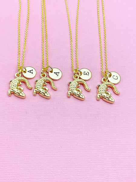 Gold Alligator Necklace, Crocodile Necklace, Personalized Customized Jewelry, N5400B