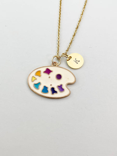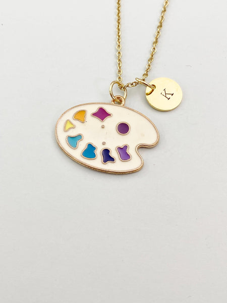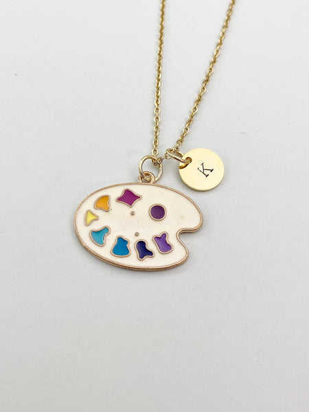 This is a gold -tone Palette charm with hand stamped initial charm on brass or Tarnish Resistant stainless steel 18 inches chain.