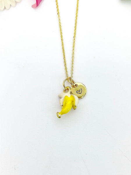Gold Banana Charm Necklace Fruits Foodie Jewelry Gift, Birthday Gifts, Personalized Customized Gifts, N5264