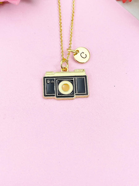 Gold Black Camera Charm Necklace, Photographer Christmas Gifts, N2217