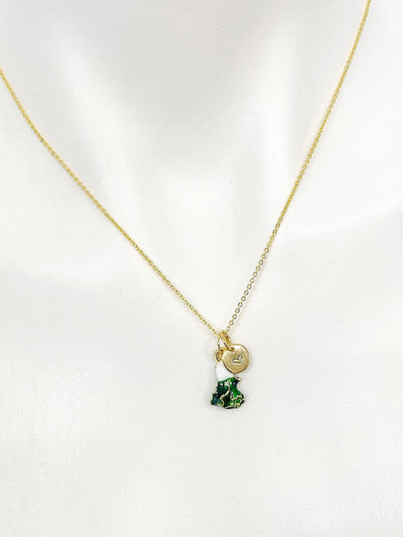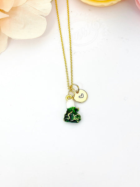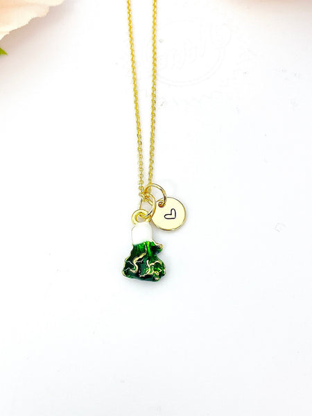 This is a gold -tone Vegi Cabbage charm with hand stamped initial charm on brass/stainless steel 18 inches chain.