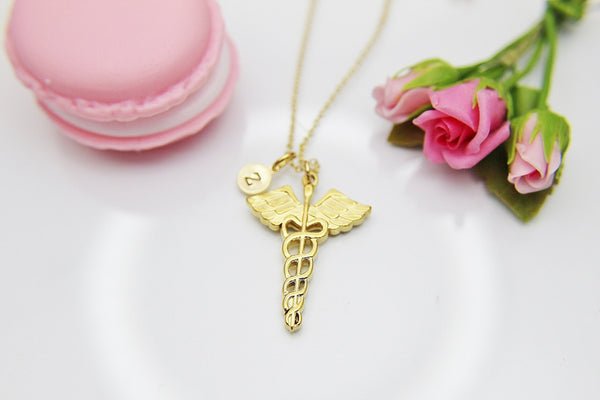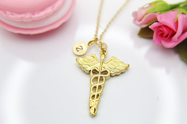 Gold Caduceus Necklace, Doctor Nurse Medical Student Graduation Gift, Christmas Gift, Thank You Gift, Mom Gift, Aunt Gift, Sister Gift, Daughter Gift, Niece Gift,