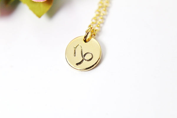 Hand Stamped Gold Capricorn Charm Necklace, Small Zodiac Horoscope Charm, 18K Gold over Brass, Astrological Zodiac Signs, Zodiac Symbols, Birthday,