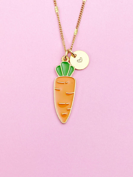 Gold Carrot Charm Necklace Best Friends Vegan Gifts Idea Personalized Customized Made to Order, N3575
