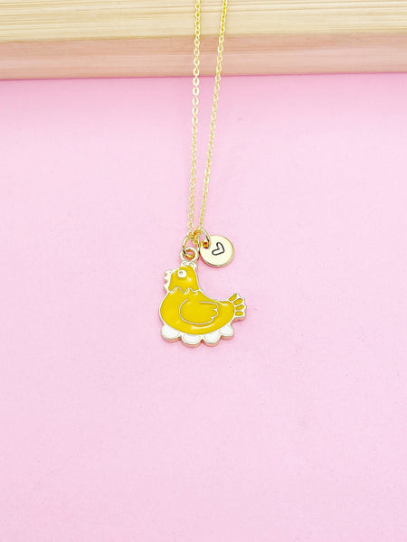Gold Chicken Hen with Eggs Charm Necklace Farmer Gifts Ideas Personalized Customized Made to Order, N5488