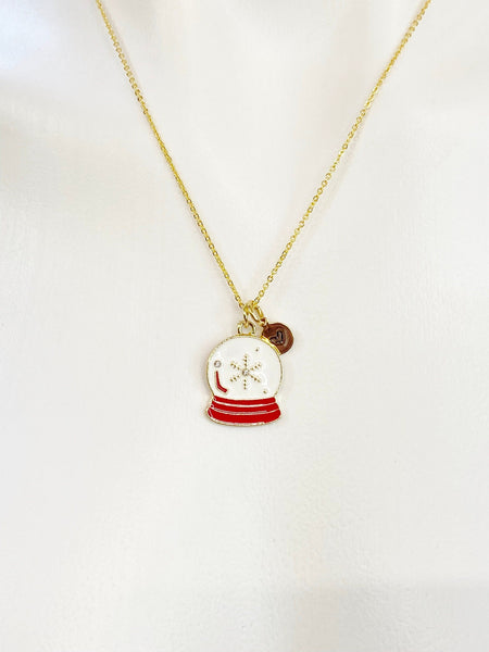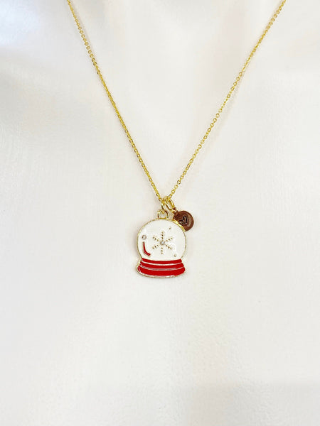 This is a gold tone Crystal Ball charm with hand stamped initial charm on gold plate brass/stainless steel 18 inches chain.