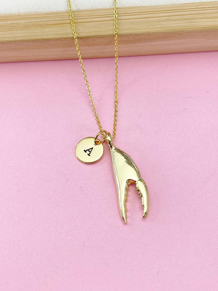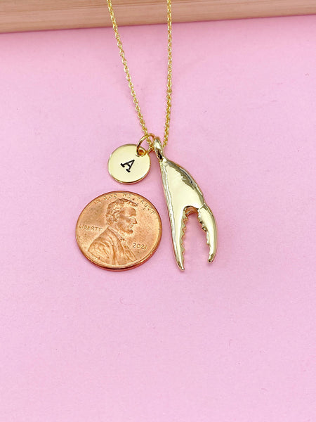 This is a gold tone Claw charm with hand stamped initial charm on brass or stainless-steel chain.