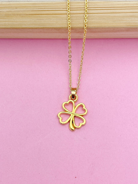 Gold Clover Charm Necklace, Shamrock St Patrick's Day Gifts Idea Personalized Customized Made to Order N2589