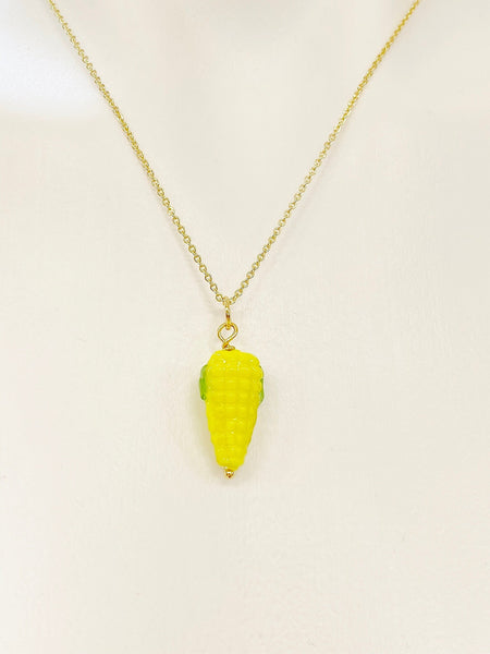 Gold Corncob Necklace, Handmade Lampwork Yellow Corn Cob Charm, Personized Customized Initial Necklace, N5310