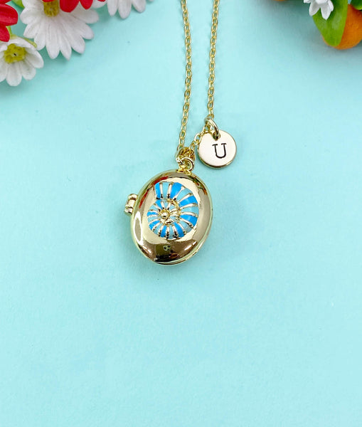 Gold Couch Shell Enamel Locket Oval Pendant Necklace, Keepsake Photo Frame Jewelry, N6595