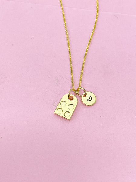 This is gold tone cupcake pan charm with hand stamped initial charm on brass or stainless-steel chain.