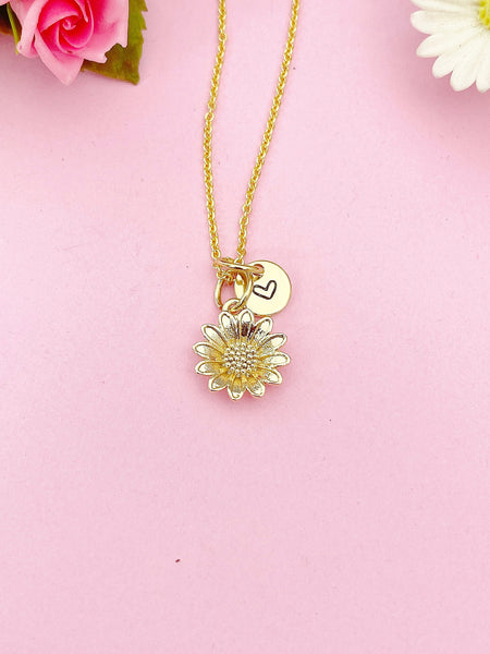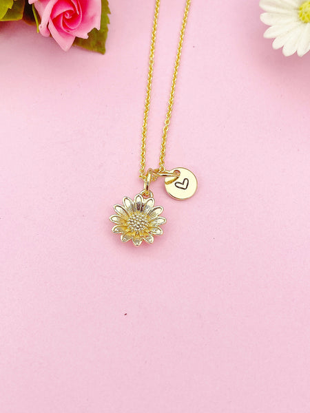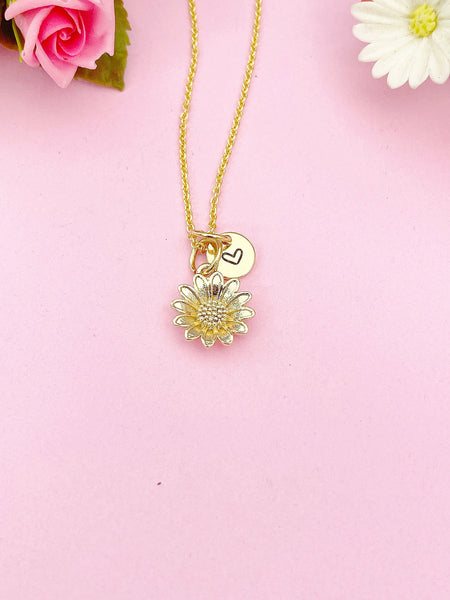 This is gold tone flower charm with hand stamped initial charm on brass or stainless steel 18 inches chain.