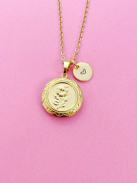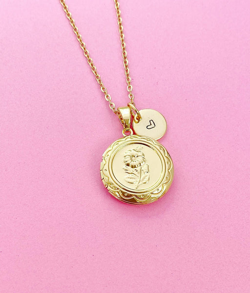 This is gold or silver tone locket charm with hand stamped initial charm on brass or stainless-steel chain. *We do not provide the service of adding photos to locket. *