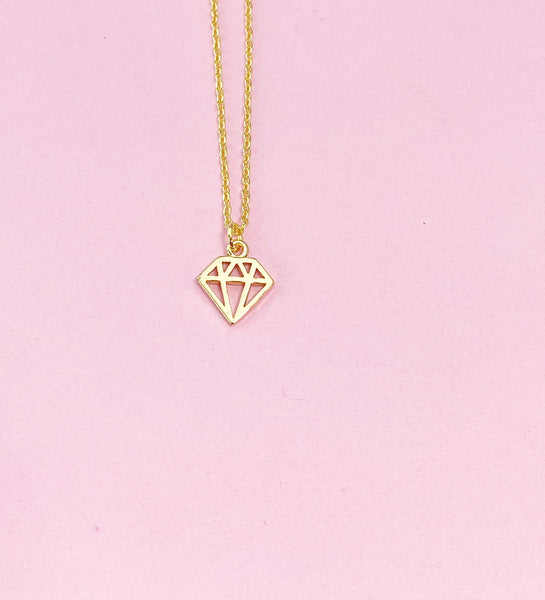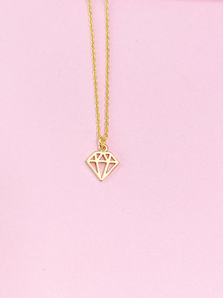 This is gold tone Diamond Shape charm on brass/stainless steel 18 inches chain.