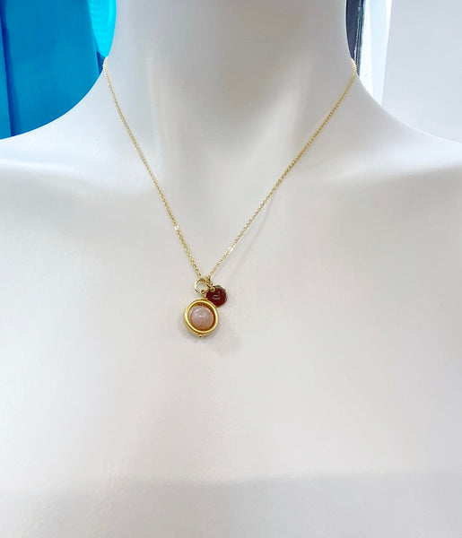 This is gold tone Natural Druzy Geode Agate charm with hand stamped initial charm on brass/stainless steel 18 inches chain.