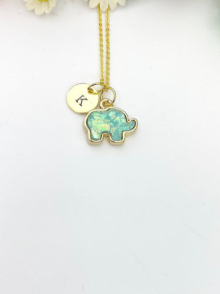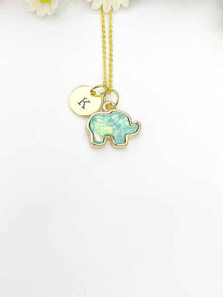This is gold tone elephant charm with hand stamped initial charm on brass or stainless steel 18 inches chain.
