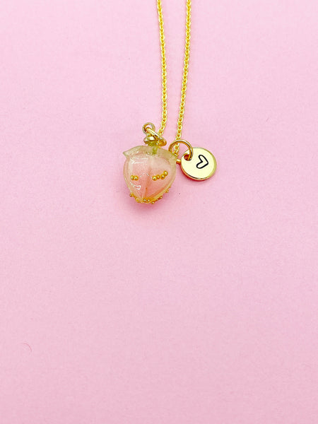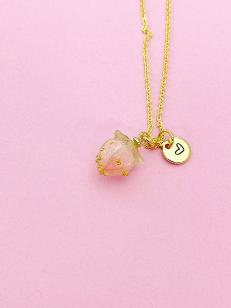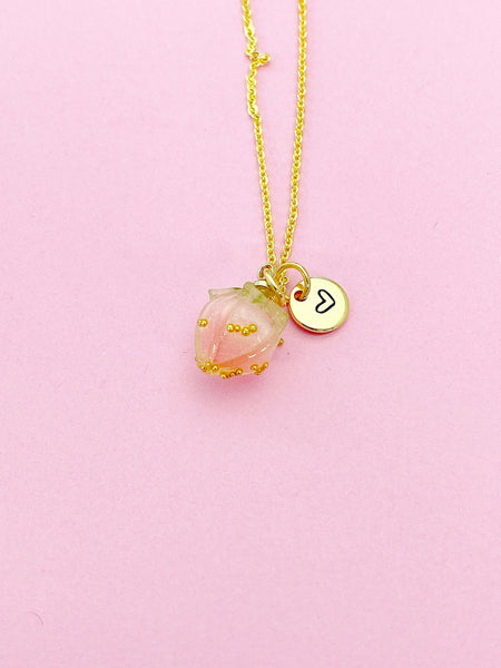 This is gold tone flower charm with hand stamped initial charm on brass or stainless-steel chain.