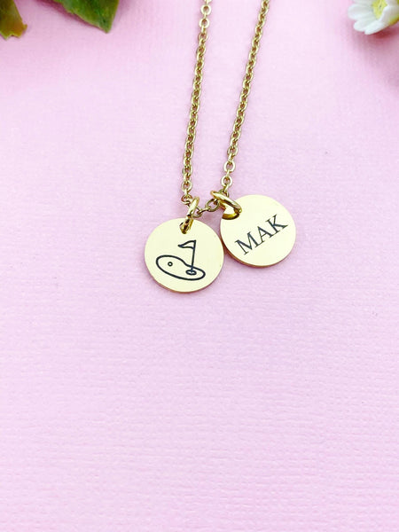 This is an engraving Golf and Initial on stainless-steel charm on stainless steel necklace.