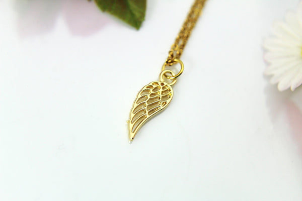 This is a gold-tone guardian angel wing charm on a stainless steel chain. (WILL NOT TARNISH or GREEN). You able to chose as a necklace, bracelet bangle or key chain.