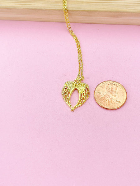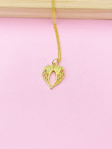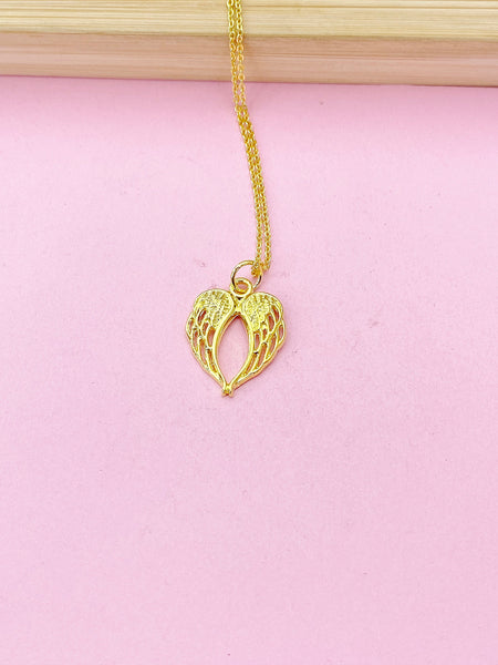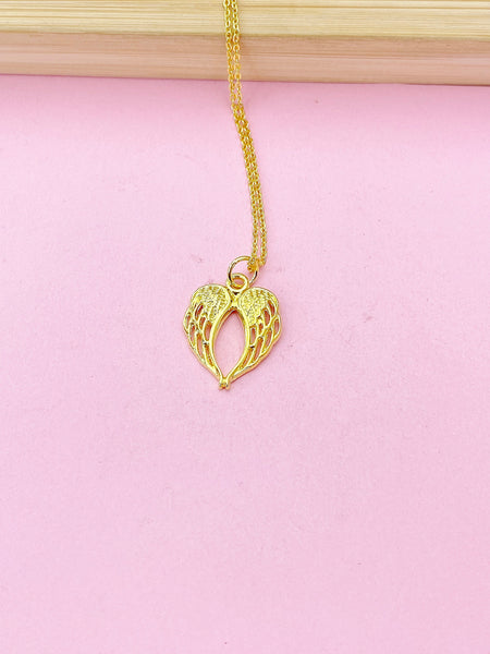 This is gold tone angel wing charm charm on brass or stainless-steel chain.
