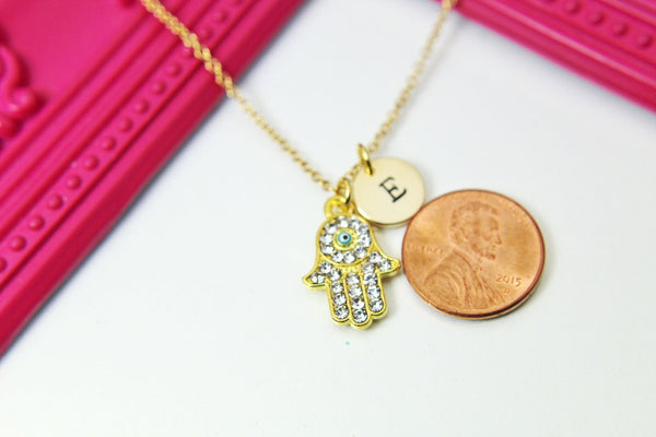 Gold Hamsa Evil Eye Charm Necklace, Hamsa Charm, Evil Eye Charm, Protective Protection Gift, Personalized Custom Monogram