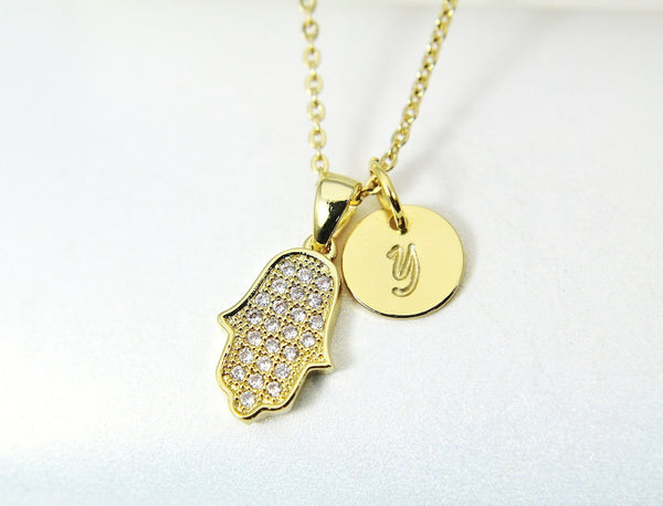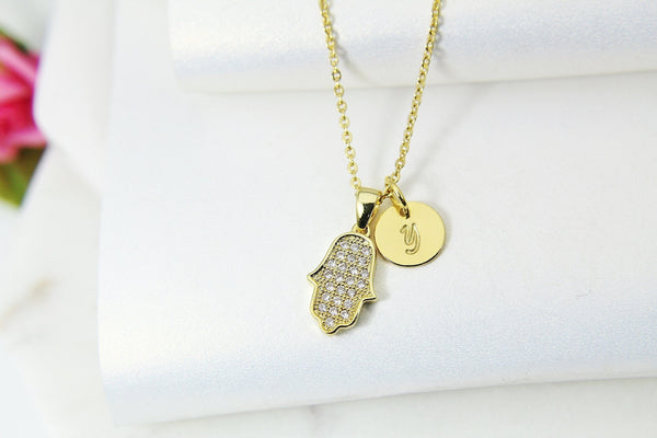 Gold Hamsa Necklace, Fatima Hand Charm, CZ Diamond Jewelry, Mothers Day Gift, Dainty Necklace, Delicate, Minimal, Personalized Gift, G008