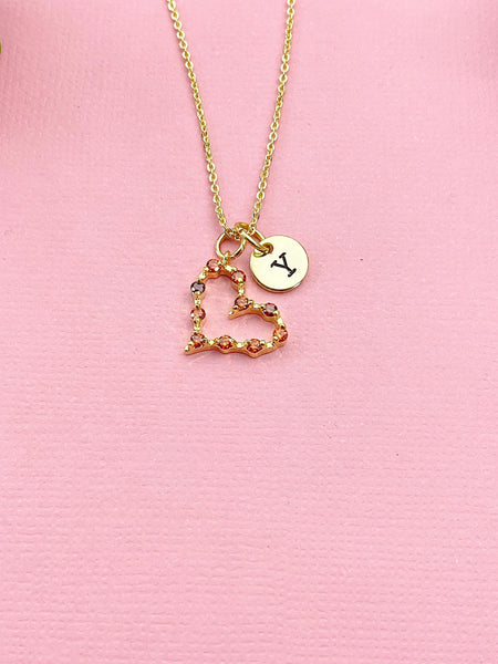 Gold Heart Zirconia Charm Necklace, Red, N6040
