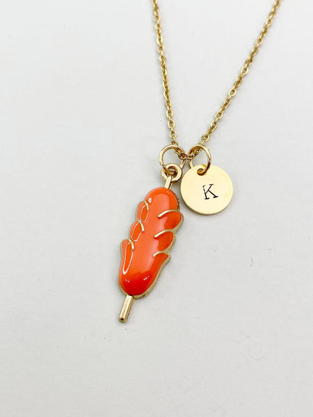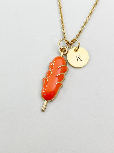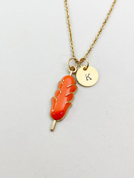 Gold Hotdog on Stick Charm Necklace, Hotdog Sausage Foodie Jewelry Gifts, N5850