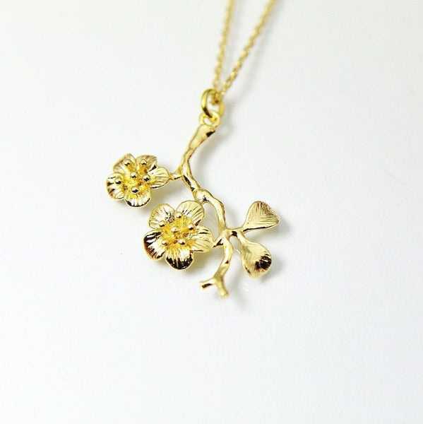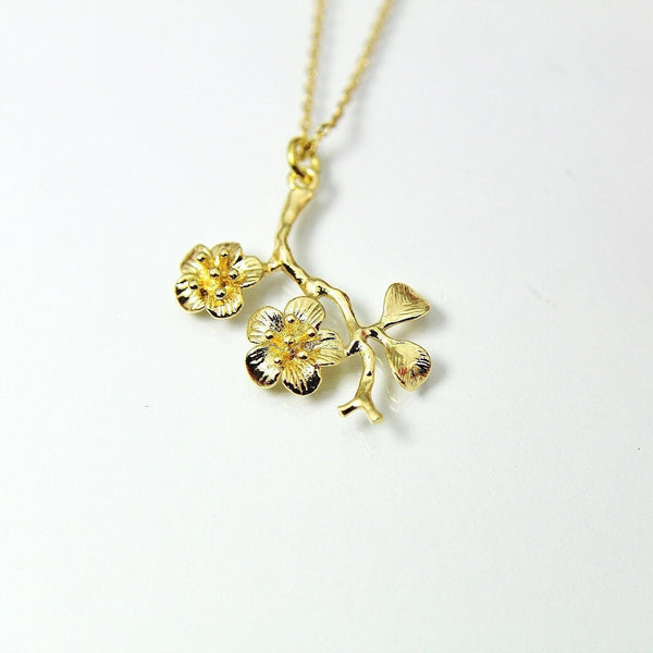 Gold Japanese Cherry Blossom Flower Charm Necklace, Best Birthday Christmas Gifts for Girl Girlfriend Daughter Sister Mom Aunt Friends N2017