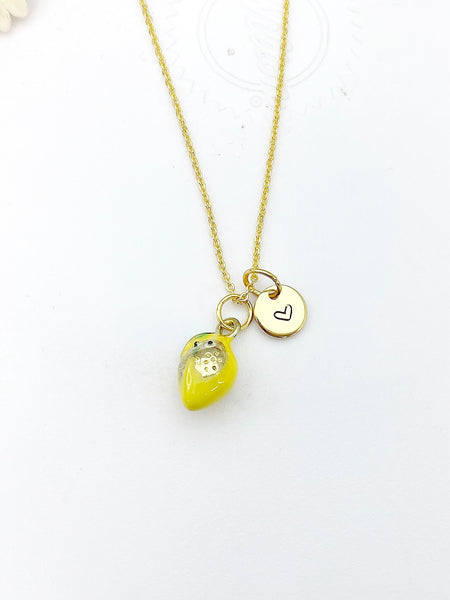 Gold Lemon with Ladybug Charm Necklace Birthday Teen Girl Gifts, Personalized Customized Gifts, N5293