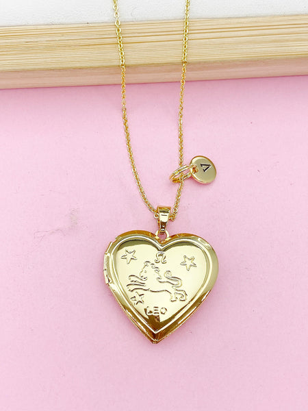 This is a gold-tone heart locket charm with hand stamped initial charm on brass or stainless-steel chain. *We do not provide the service of adding photos to lockets. *