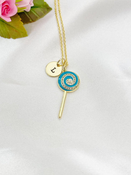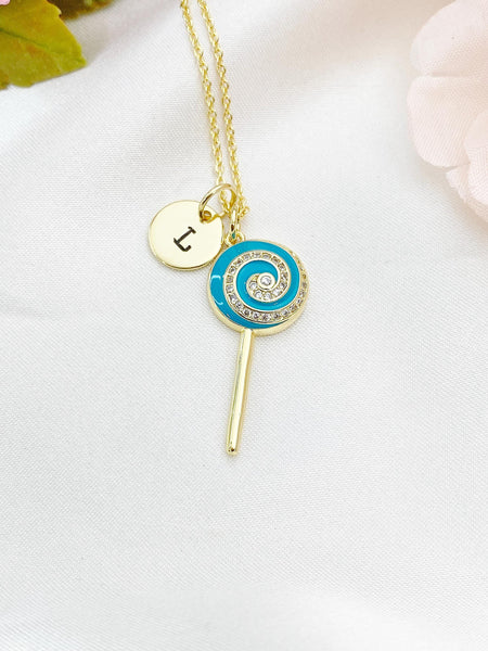 Gold Lollipop Charm Necklace, Teal Blue, N5919