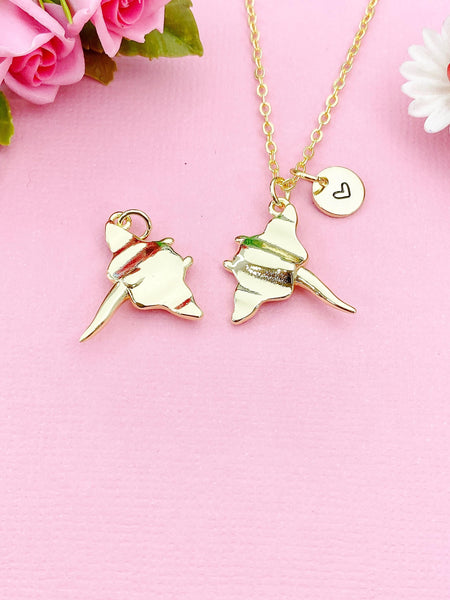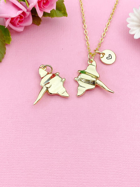 This is a gold -tone Manta Ray charm with hand stamped initial charm on brass or stainless steel 18 inches chain.